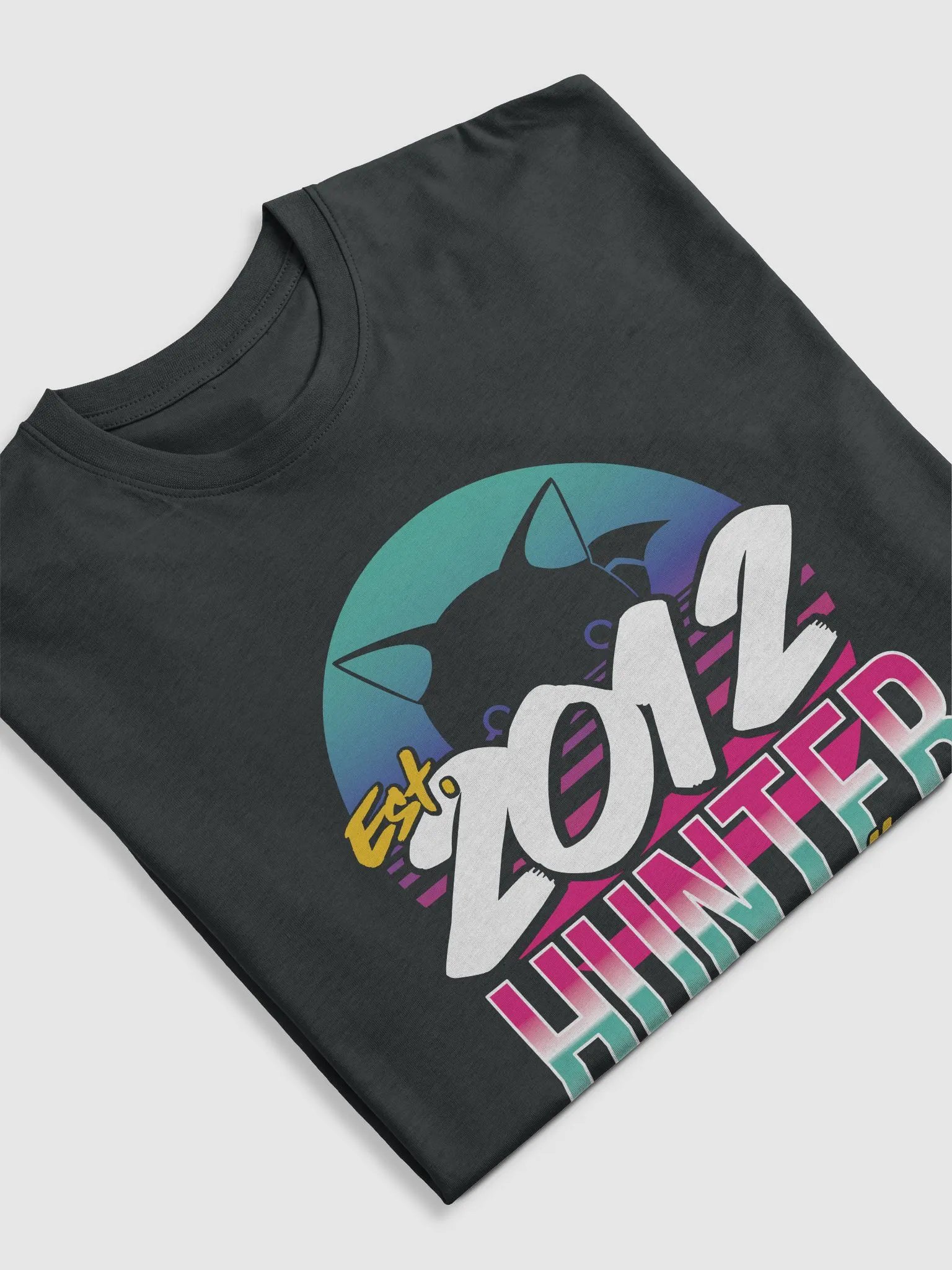 Fresh off the press is a premium commemorative tee highlighting when the Hunter's Guild community was officially established. Feel like a quality hunter, and wear this shirt with pride! Features the leader's fave stalwart mechaniloid companion on a vintage sunset in the guild's colors.